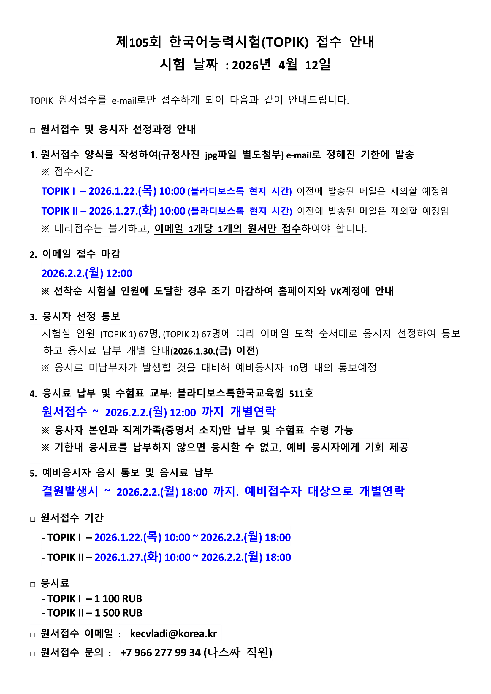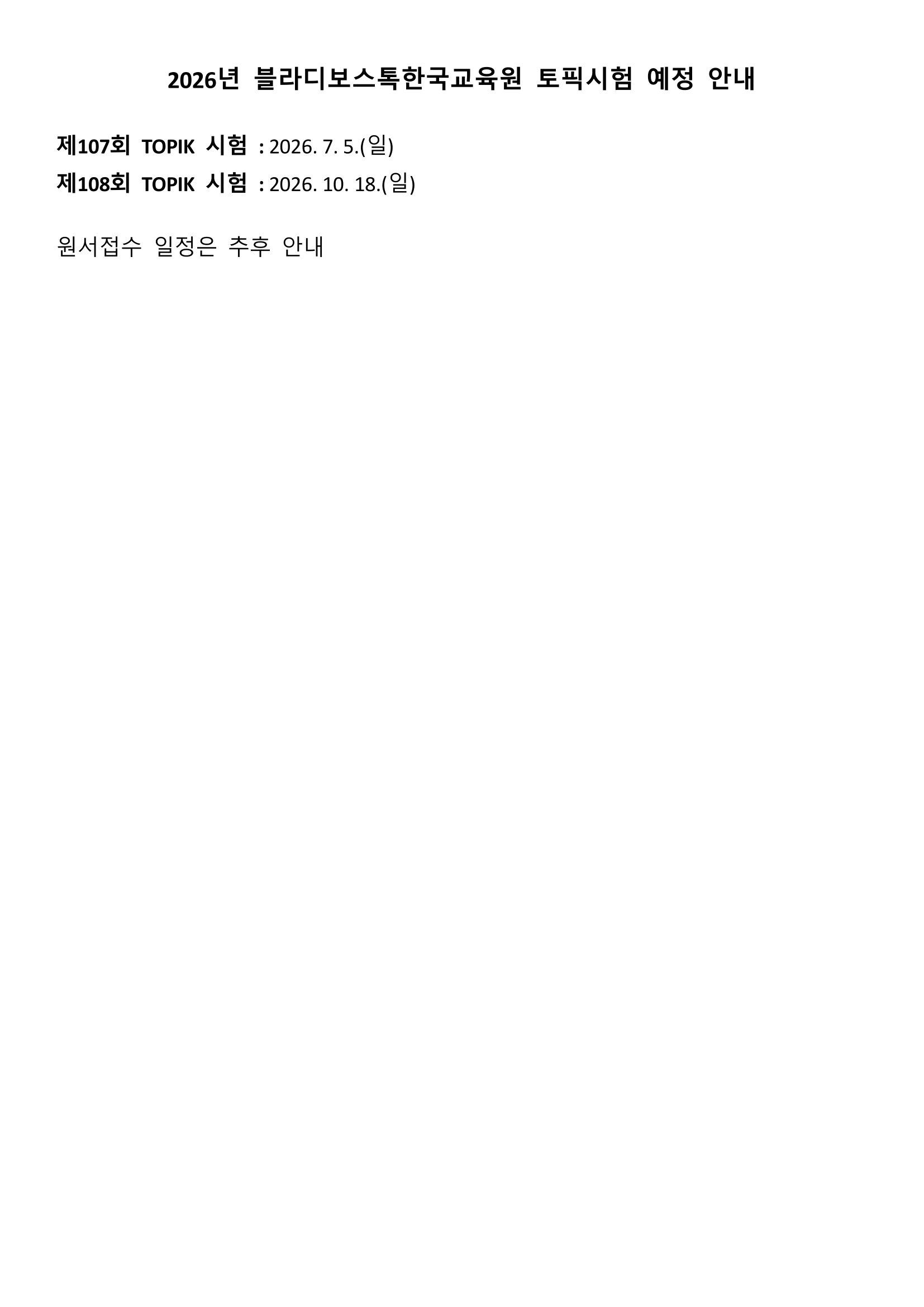 제105회 한국어능력시험(TOPIK) 접수 안내